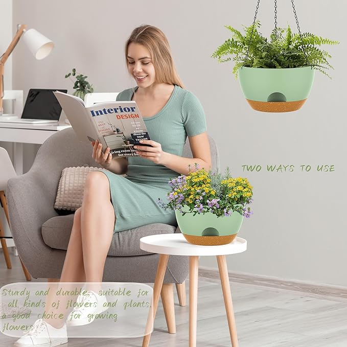 - 【Self-Watering Hanging Flower Pots with Removable Saucer】the appearance and structural design of the Hanging Pot prevents overwatering and acts as a water reservoir to promote Plant growth. It is suitable for a variety of Hanging Pot Plants, such as ivy, Herbs, Ferns, Philodendrons, Succulents, Flowers or other Plants