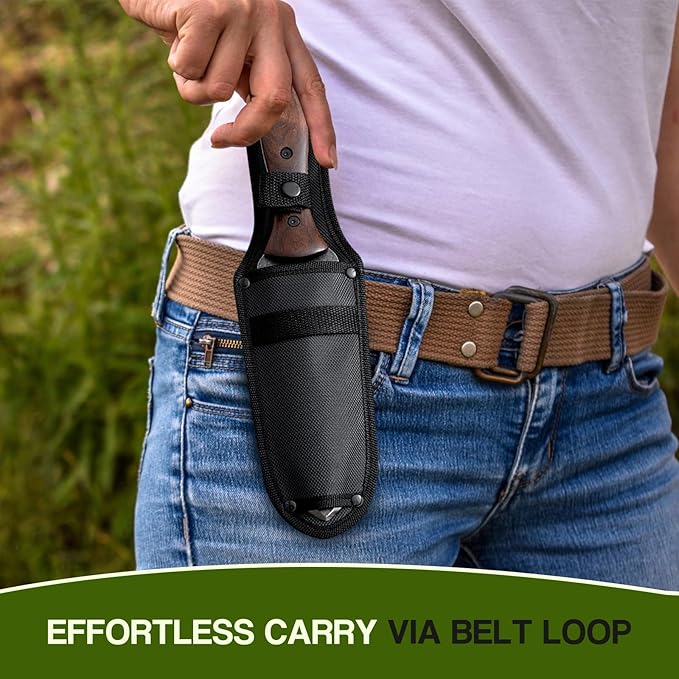 - PROTECTIVE SHEATH GARDEN ACCESSORY: The knife comes with a sheath that has a belt loop, making it convenient to carry and effectively protecting the blade. The hanging hole on the walnut wood handle allows for easy storage in the garage or tool room. Whether for daily gardening work or outdoor trips, it is a practical and thoughtful accessory