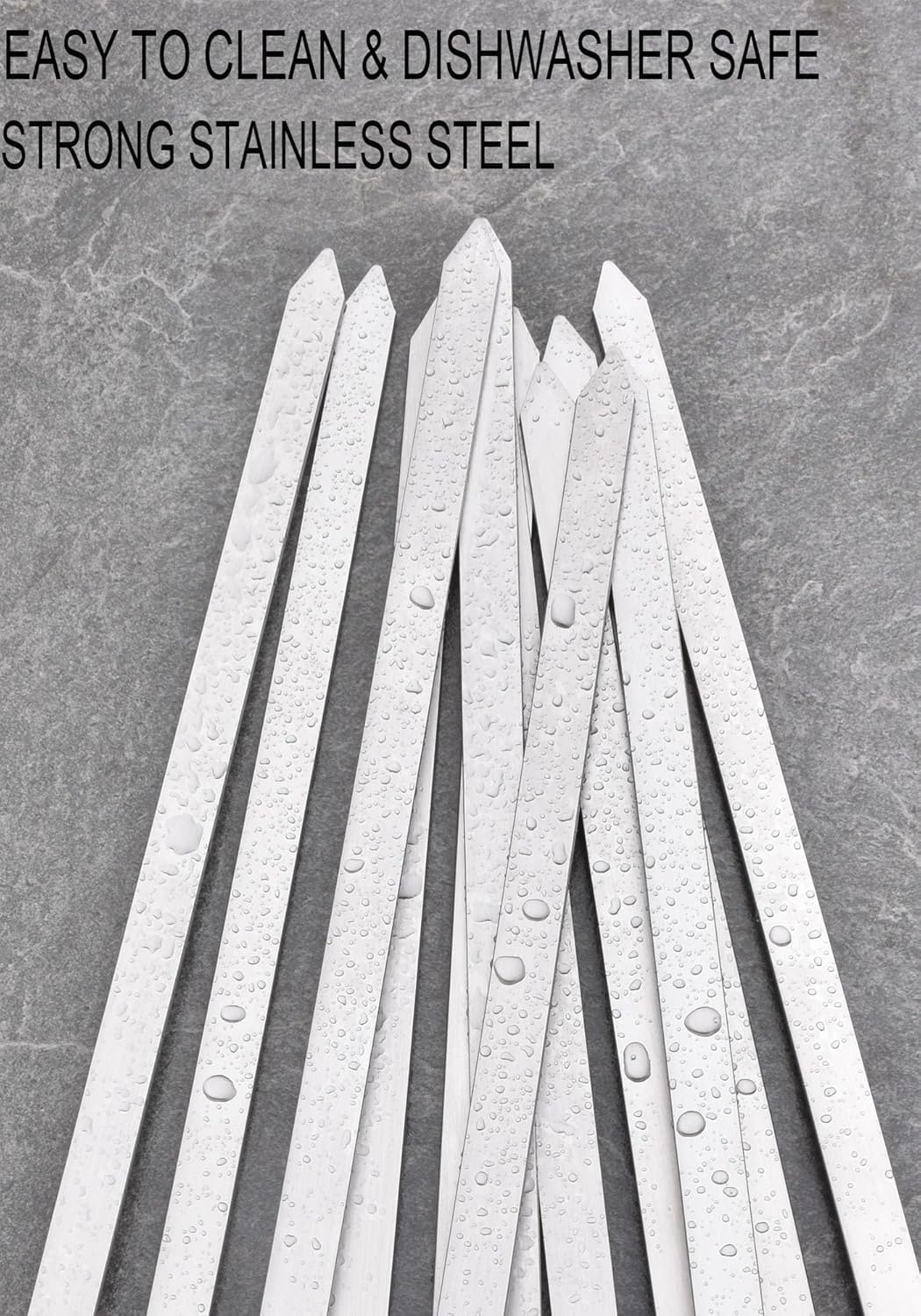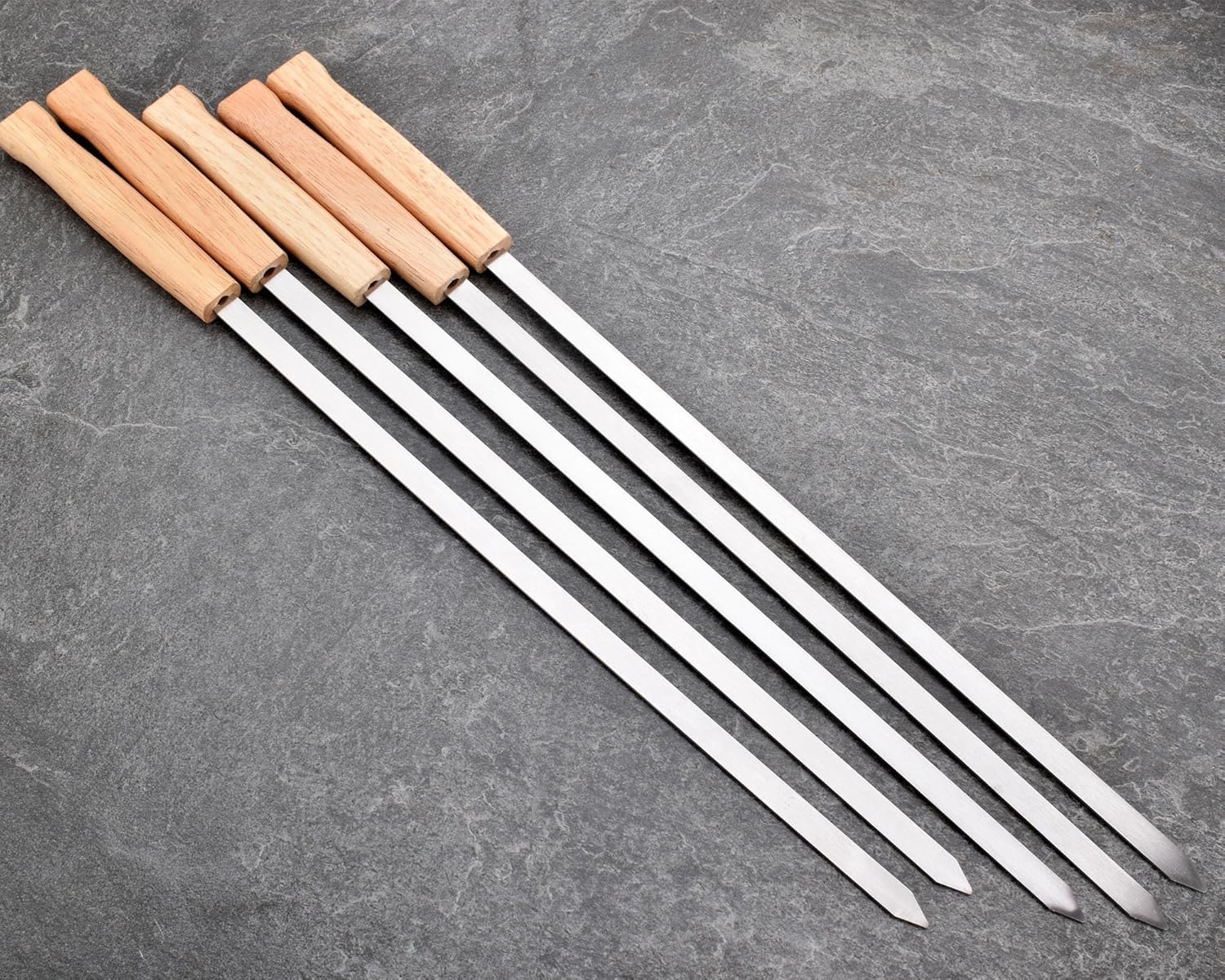- 17 Inches long shish kabob skewers, Rust resistant stainless steel blade,Comfortable wooden handle grip;
