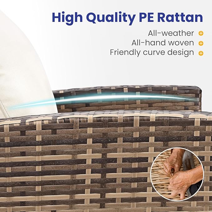 - All-Weather Durability: Built to last,the patio furniture set combines rugged construction with low-maintenance care. The powder-coated steel frame and handwoven PE wicker can spend less time maintaining and more time enjoying your outdoor