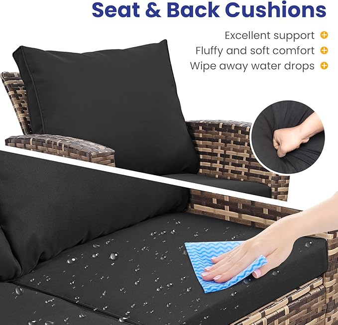 - All-Weather Durability: Built to last,the patio furniture set combines rugged construction with low-maintenance care. The powder-coated steel frame and handwoven PE wicker can spend less time maintaining and more time enjoying your outdoor