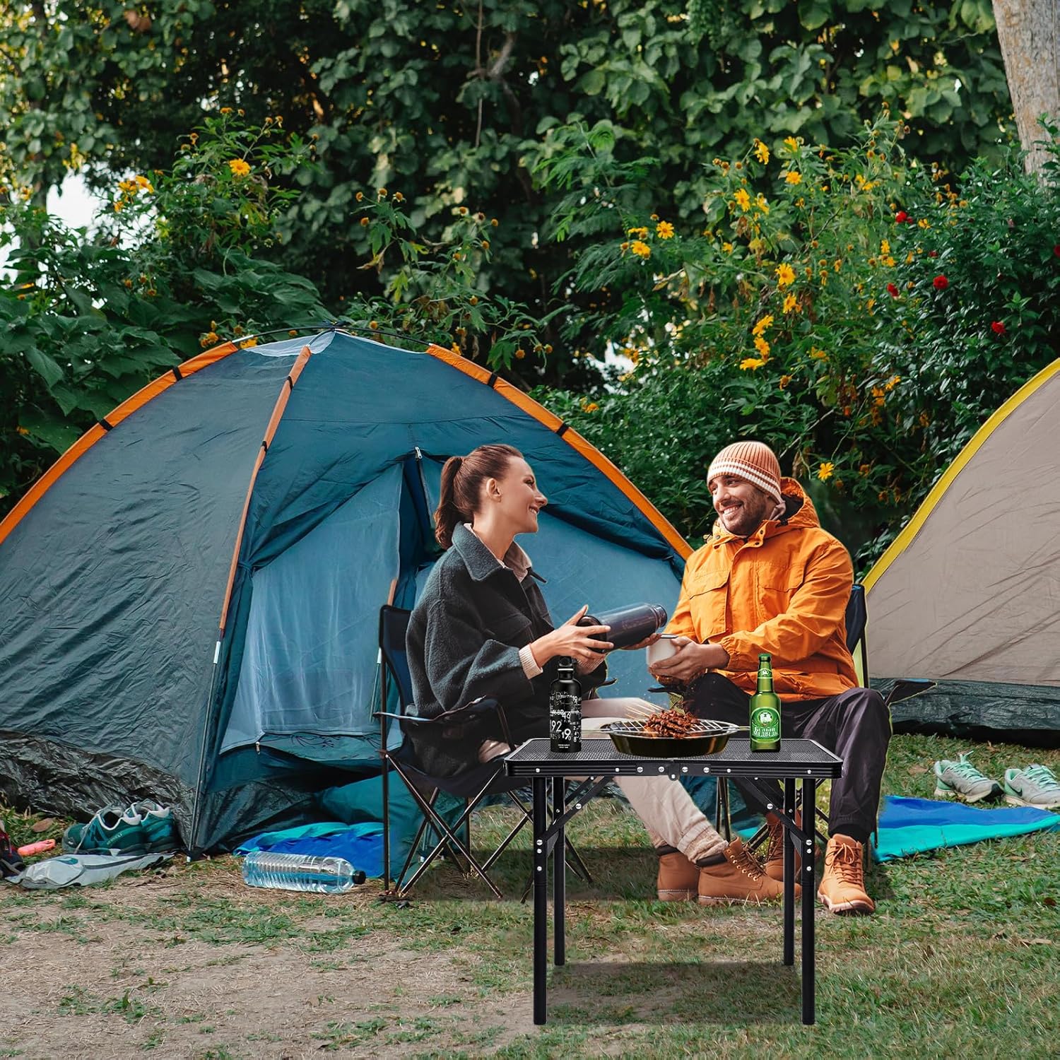 - 2 Height Options, Outdoor/Indoor use - At a height of 9.4 inch, you can use it with a picnic or beach mat or rug as a floor table, and when adjusted to 20.4 inches, you can use it with a picnic or fishing chair. This folding table is very suitable for one person, couple and family to use in most daily occasions and outdoor activities. It can be used as outdoor bbq table, grill stand, picnic table, dining table, beach coffee table, game table, fishing table, rv table, card table and side table
