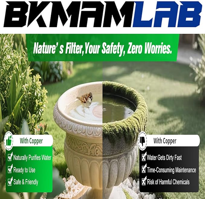 • High-Purity Copper Material:Made of 99.9% pure copper (0.6mm thick), these discs naturally help maintain cleaner water in bird baths by inhibiting algae buildup.