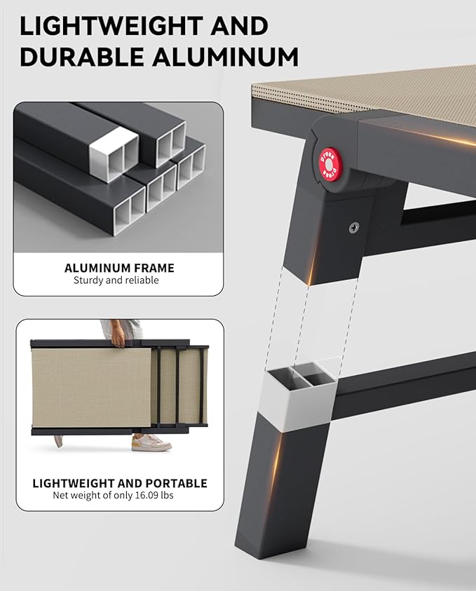 - 【DURABLE & LIGHTWEIGHT】Constructed with a powder-coated aluminum frame, the outdoor patio lounge chair is rust-proof for lasting use. Thickened tube walls make it support up to 400 pounds, catering to most body types. And lightweight design offers effortless portability and comfort for any outdoor adventure