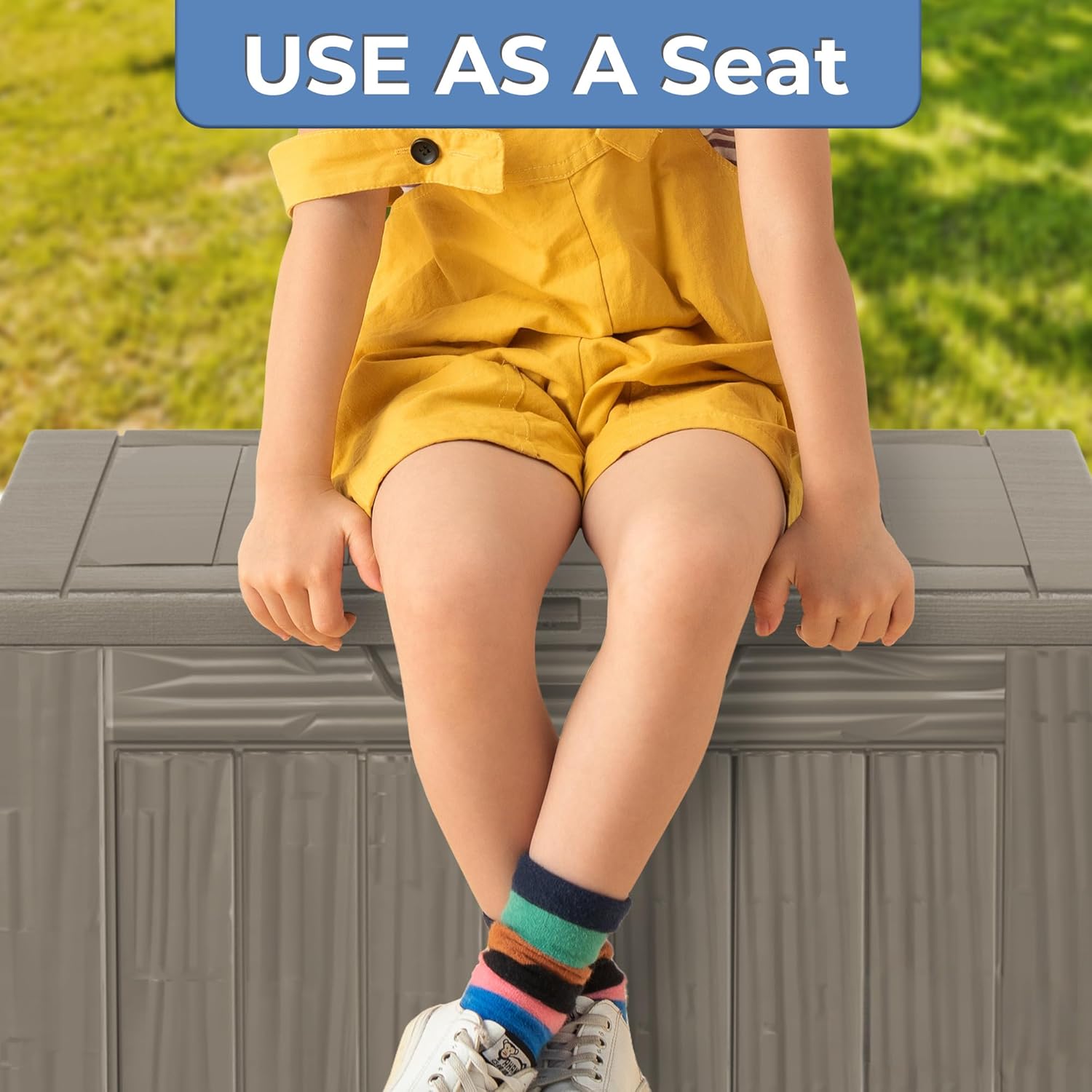 35 Gallon Waterproof Large Resin Deck Box Indoor/Outdoor Lockable Storage Container and Seating for Garden, Pool, and Patio (35 Gallon, Grey)