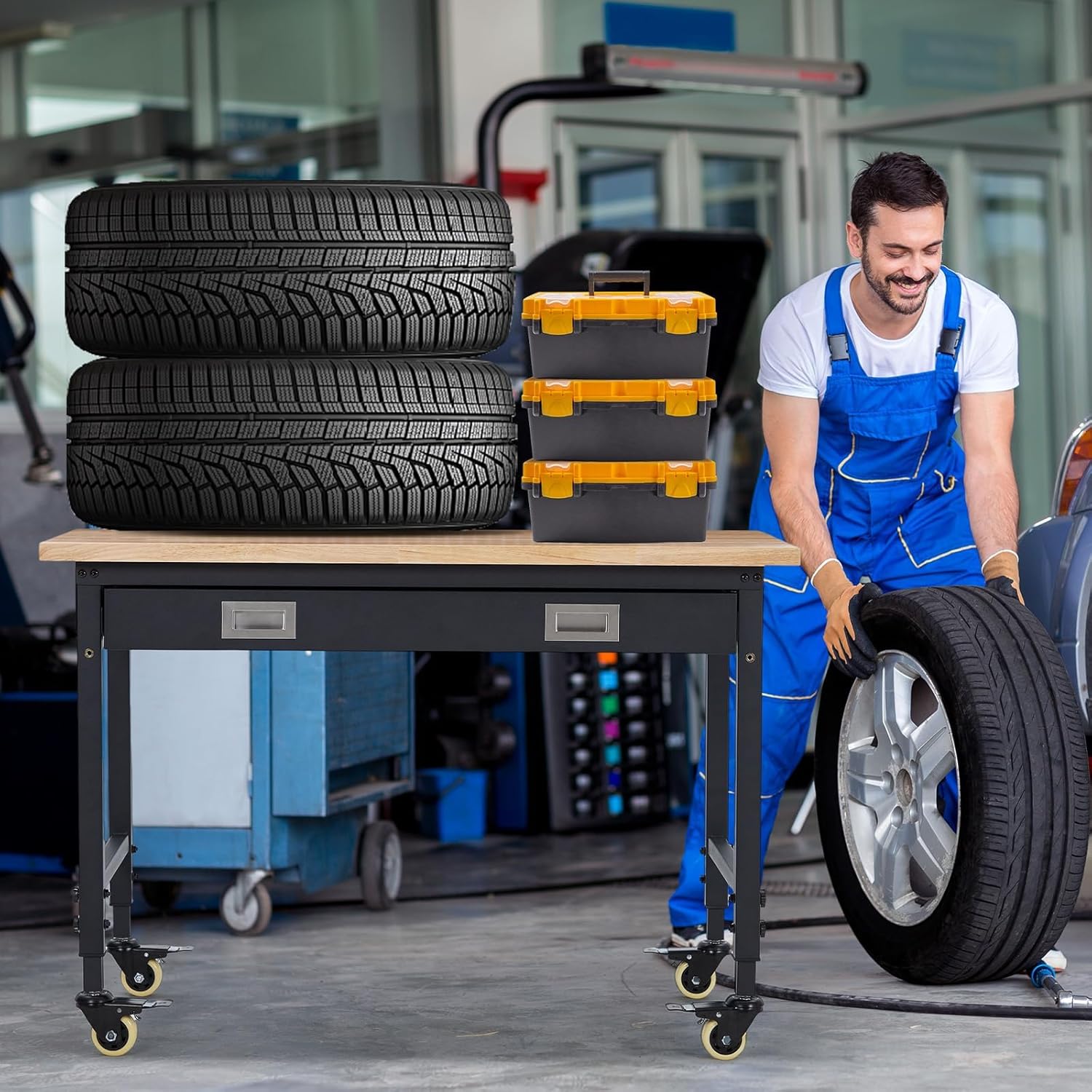 - 【Spacious Storage and Organization】This workbench is carefully designed to maximize orderliness. Its robust construction ensures with it even the most demanding tasks can be handled. The generous work surface offers plenty of space for extra equipment and accessories. Thanks to this workbench, you can maintain a tidy workspace and have all your tools readily accessible.
