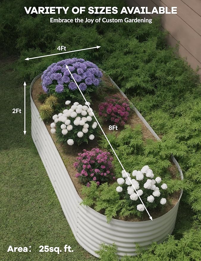 - 【2 Pack Premium Galvanized Raised Garden Bed】Our heavy-duty raised garden bed features 18/24in elevated sides - taller than standard garden boxes for better root growth. Constructed with weather-resistant galvanized steel and internal supports, this planter raised bed offers superior durability for outdoor use.