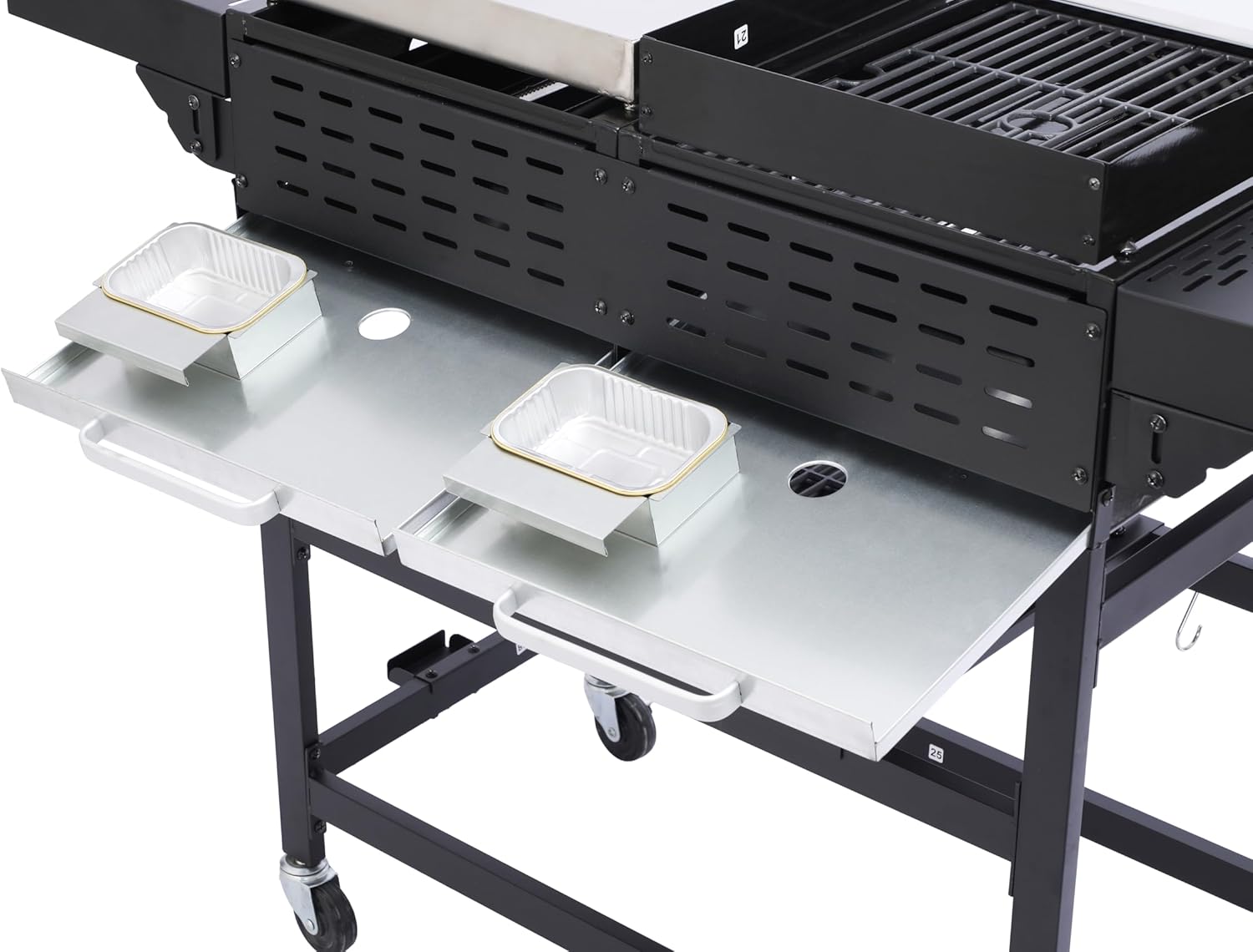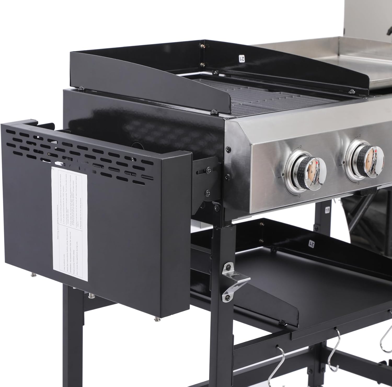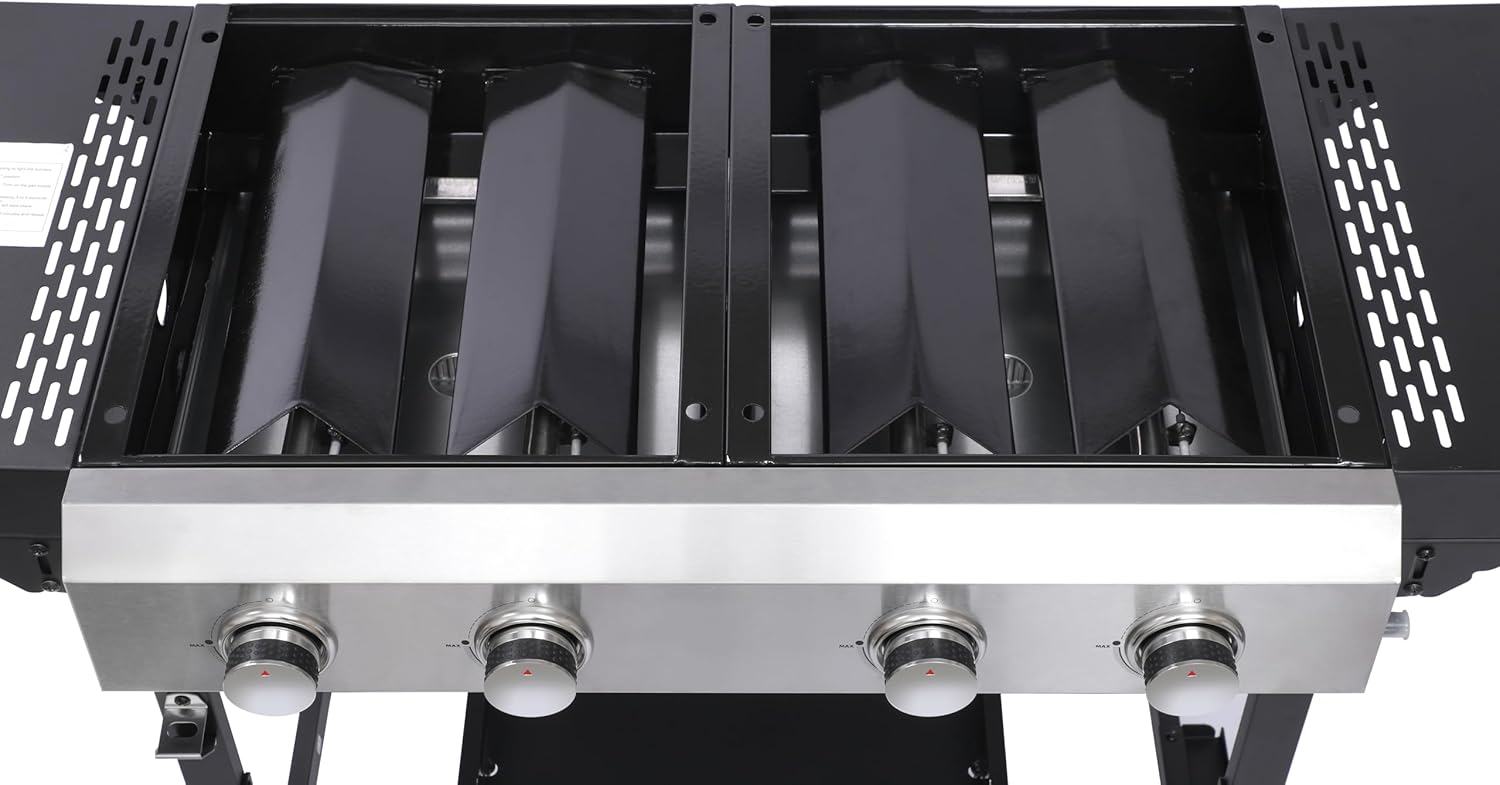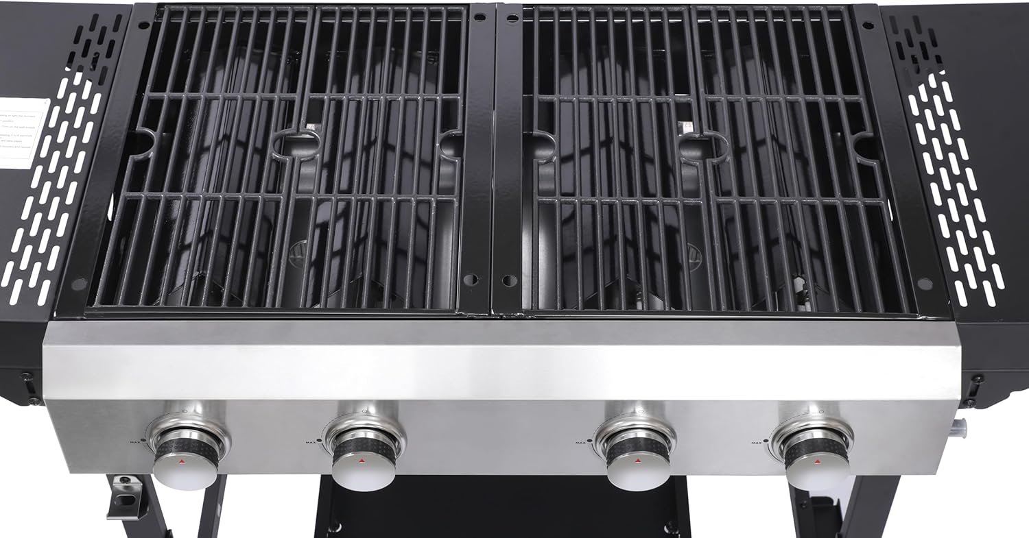 - 🔥 Massive 38,200 BTU Output – Four primary burners + side burner for full meal prep.