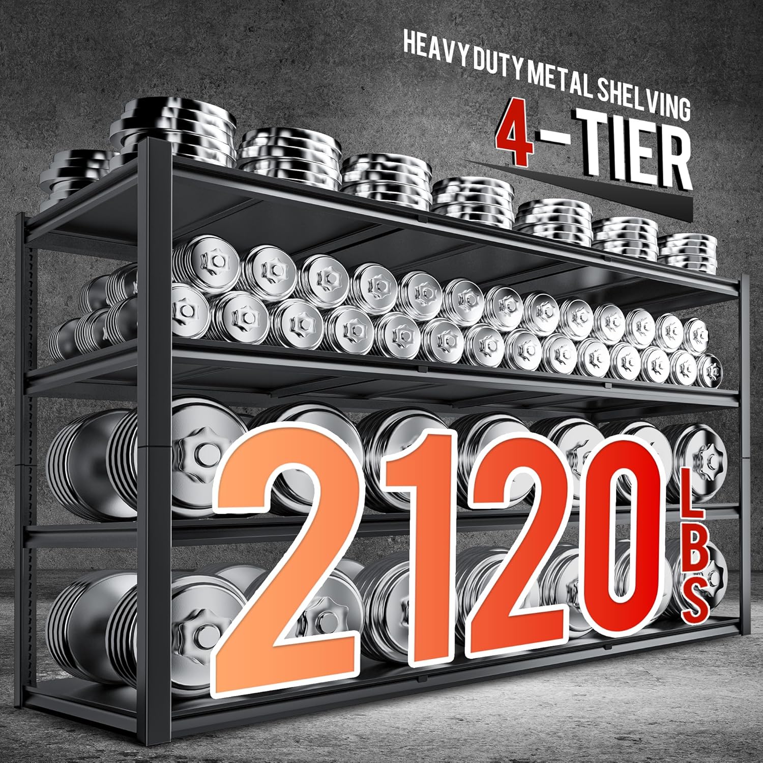 59.8" W x 59.8" H x 24.2" D Storage Shelves Metal Shelving, 2120LBS Garage Shelving Unit with Adjustable Shelf, 4 Tier Storage Rack for Garage, Pantry, Warehouse, Basement, Black